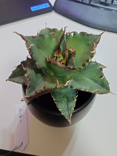 名古屋城で「social castle market」というイベントに行った時に456さんのお店で3つで1,000円で売ってあった内の1つです。大きさは6cmぐらいです。覇王龍は育てていなかったので短葉のものを選んでみました。部屋の中のアガベ棚に置いて育ててみようと思いま…